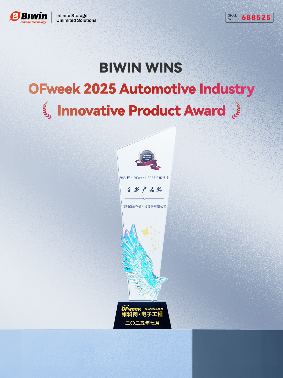 Recently, BIWIN Spec automotive-grade eMMC solutions have garnered multiple prestigious industry honors, including the “Domestic Supply Chain Breakthrough Award 2025” from GaoGong Intelligent Vehicle, the “2024 Automotive Electronics Science and Technology Award (Outstanding Innovative Product)” from the Shenzhen Automotive Electronics Industry Association, and the “2025 Automotive Industry Innovative Product Award” from OFweek. Notably, BIWIN stands as the only storage company named in this year’s GaoGong Intelligent Vehicle Awards, listed together with prominent OEMs and Tier 1 suppliers—a clear recognition of its strength in automotive-grade storage technology, product innovation, and market impact.