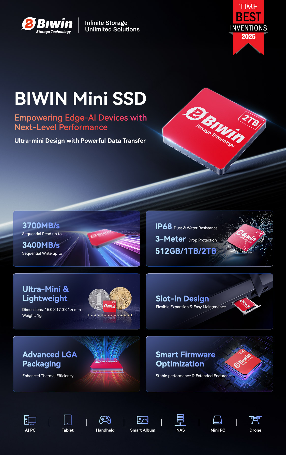 The Mini SSD marks BIWIN’s continued commitment to creating end-to-end storage solutions that empower partners and redefine the edge-AI landscape.