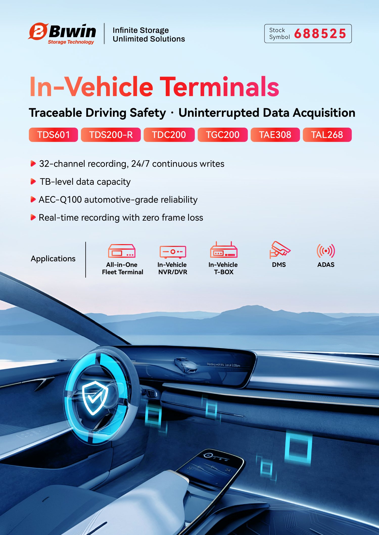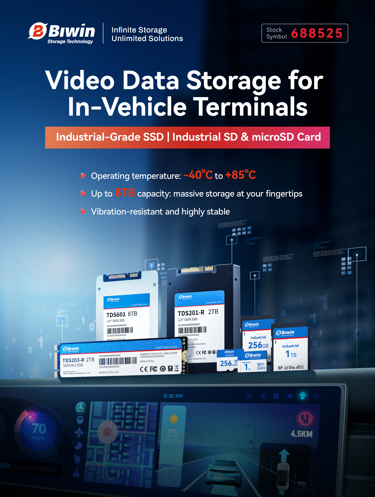 As intelligent transportation and connected vehicles continue to expand its footprint, in-vehicle terminals are now widely deployed across fleet management, road supervision, logistics scheduling, special-purpose vehicles, and advanced driver-assistance systems (ADAS). The multi-functional edge-computing nodes that integrate positioning, communication, video recording, event triggers, and remote management highly demand sustained, reliable and integrated data storage capabilities.
