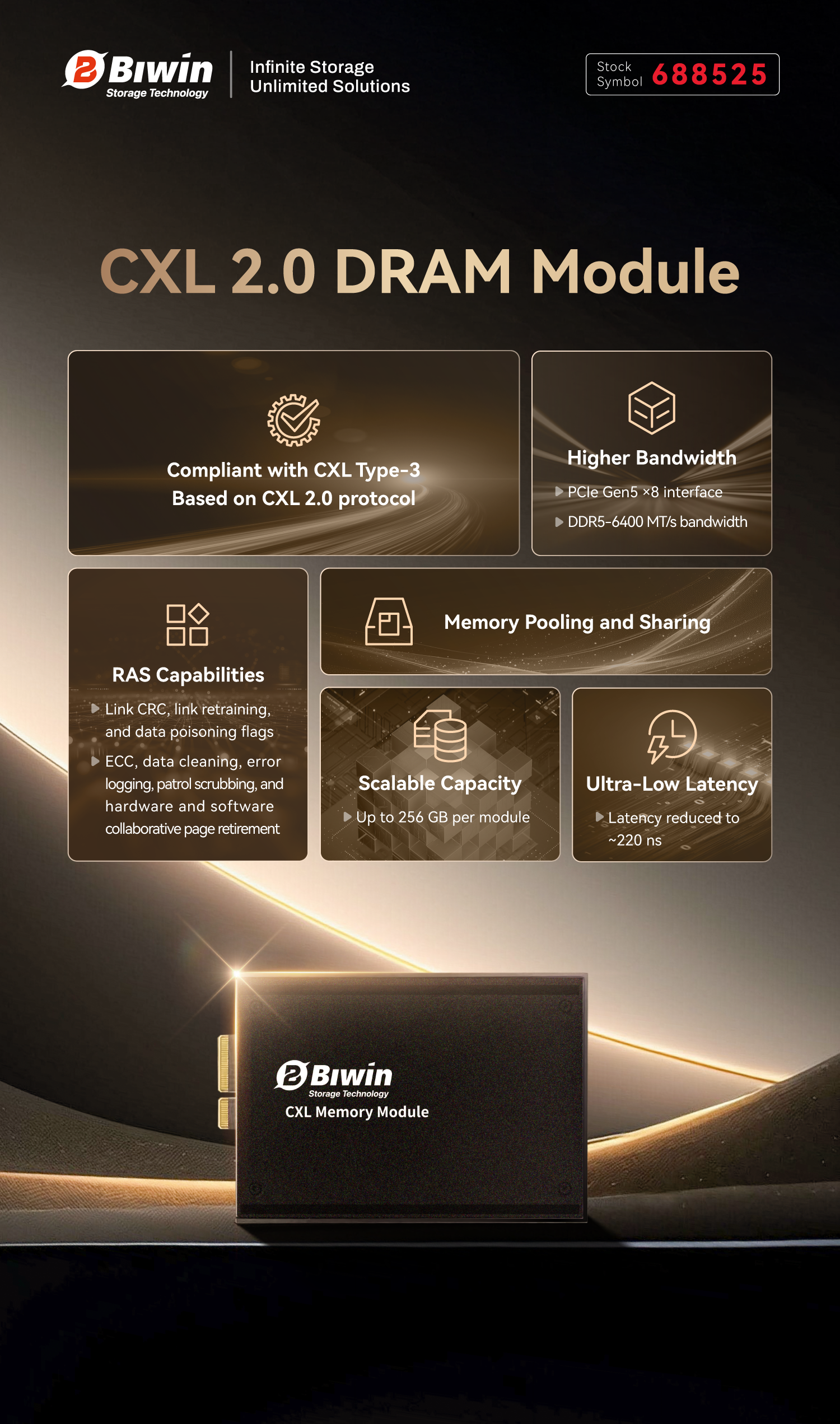 - For the enterprise market: BIWIN has built a complete enterprise-grade storage matrix tailored for AI servers, including CXL memory modules, PCIe Gen4/Gen5 SSDs, SATA SSDs, and RDIMMs, providing a solid foundation for cloud training and edge inference.