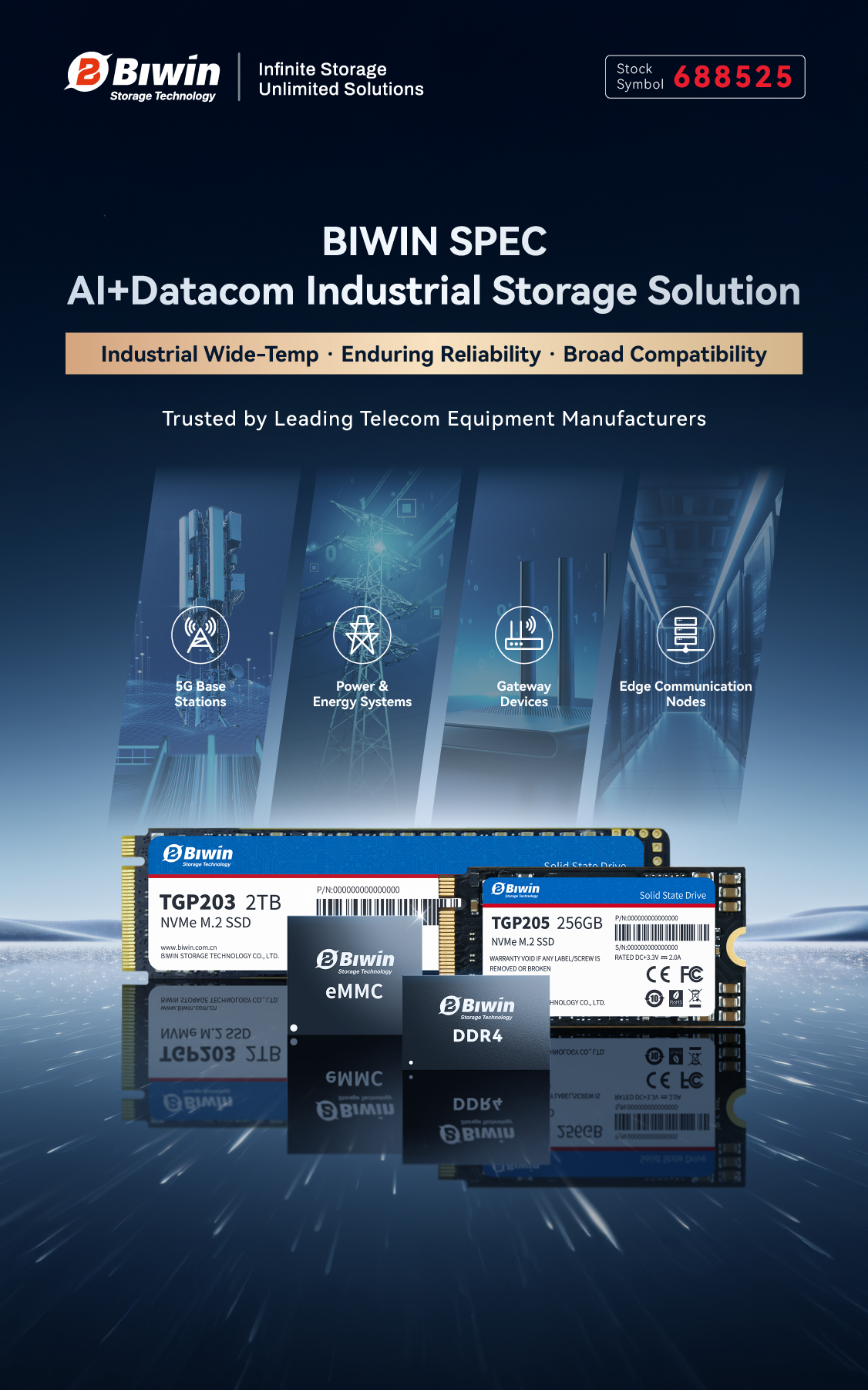 BIWIN’s AI plus datacom storage solution has been widely deployed across leading telecom equipment vendors in scenarios such as main control boards, gateway devices, and edge communication nodes.